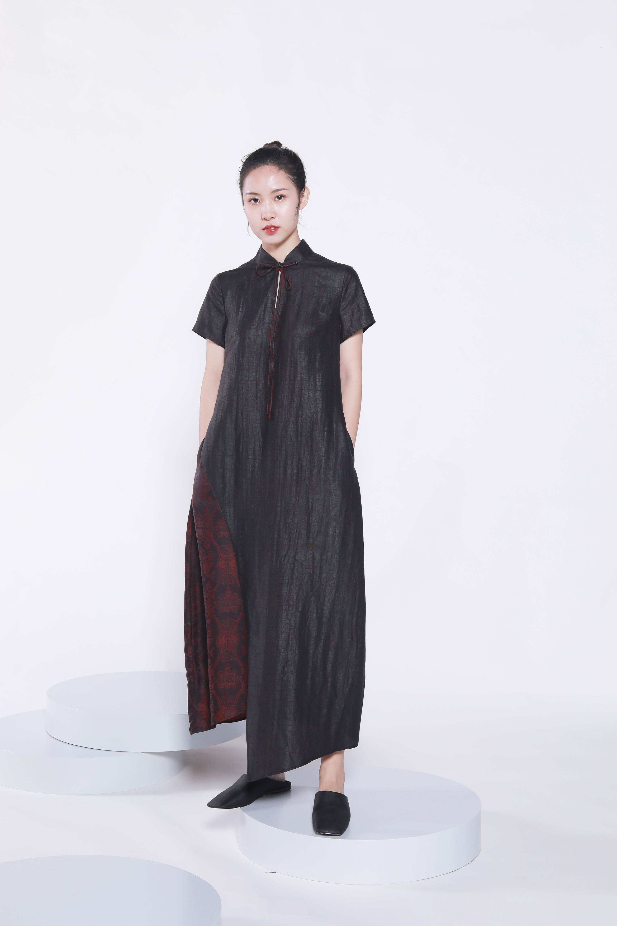 红色边旗袍裙