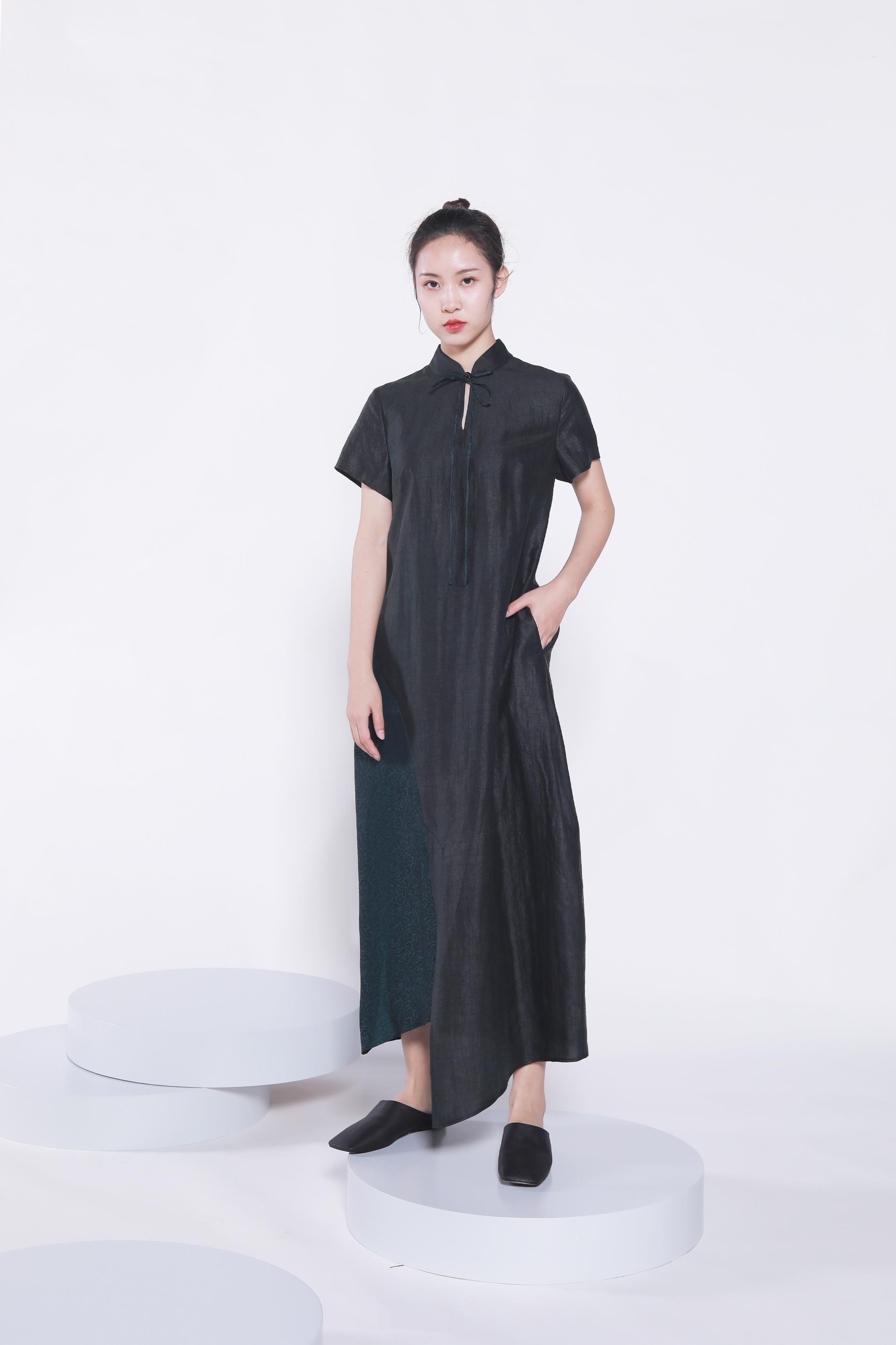 绿色边旗袍裙